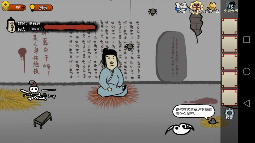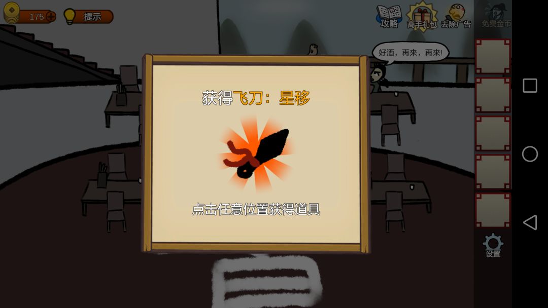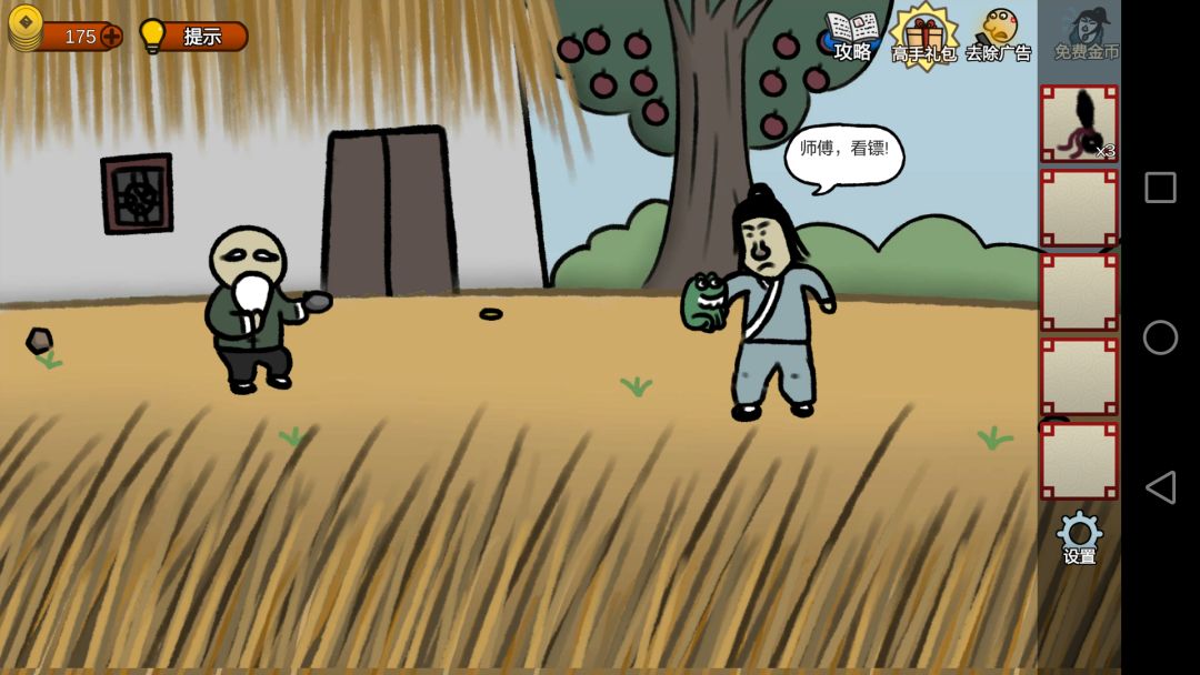 房间捡起5个铜板到隔壁用钱换酒给师傅。(这个铜板画的一言难尽,咋和暗器那一关的瓦砾那么像呢)