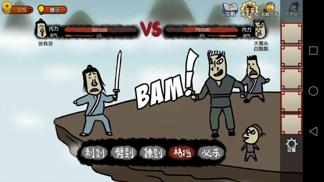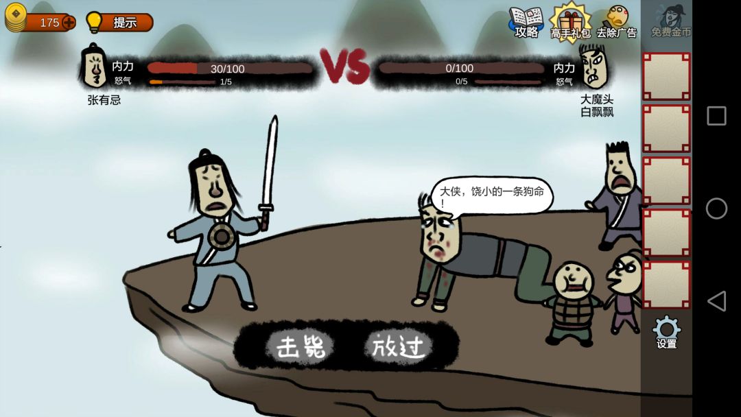 打!打完后,先点右下角路人的护心镜,装备在张有忌身上,再点放过。