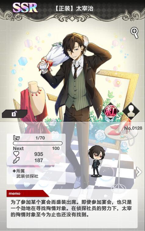 为了参加某个宴会而盛装出席。即使参加宴会,也只是一个劲地在寻找殉情对象。在侦探社员的努力下,太宰的殉情对象至今为止也还没有找到。