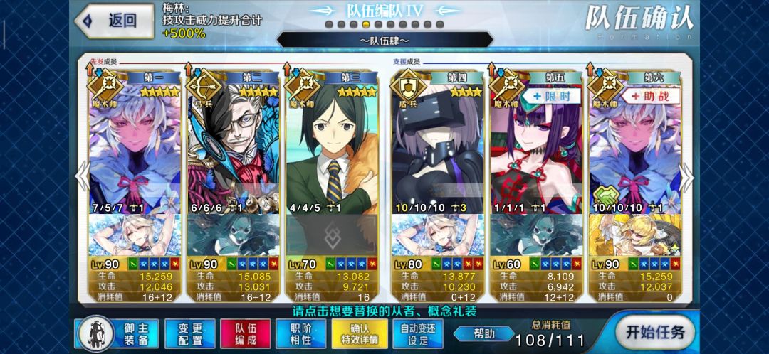 站位是:梅林 莫里亚蒂 孔明 学妹 术酒吞 梅林