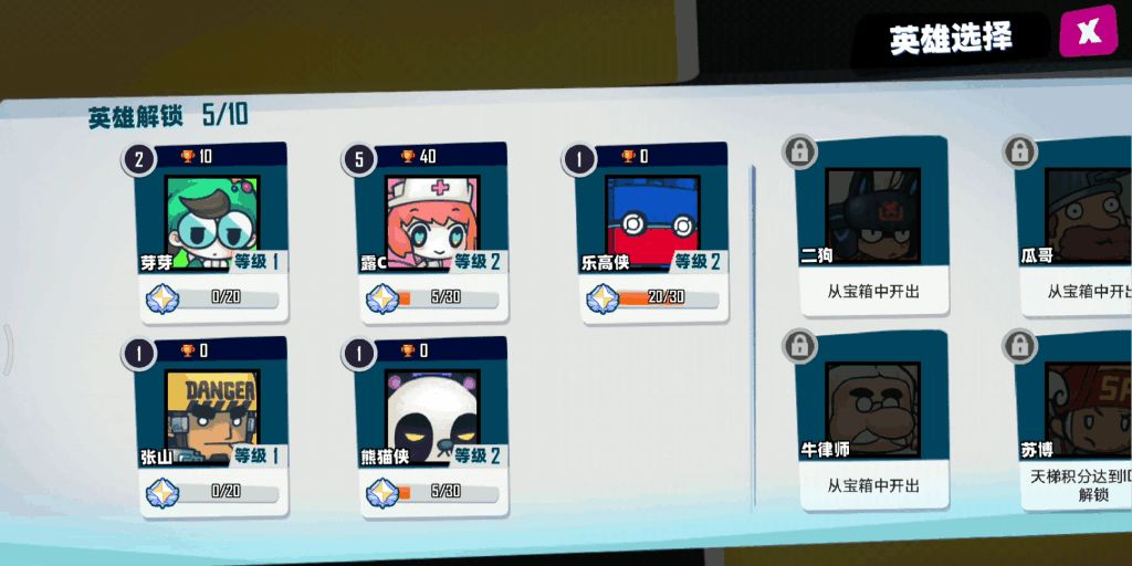 英雄有自己的定位,比如战士、刺客、支援等。玩家可通过完成成就和日常任务获得英雄碎片,给英雄升级。升级后的英雄技术属性会更高,技能是不变的。英雄的等级是直接进入战局就有效的,而装备这些是需要开局后拾取才生效的