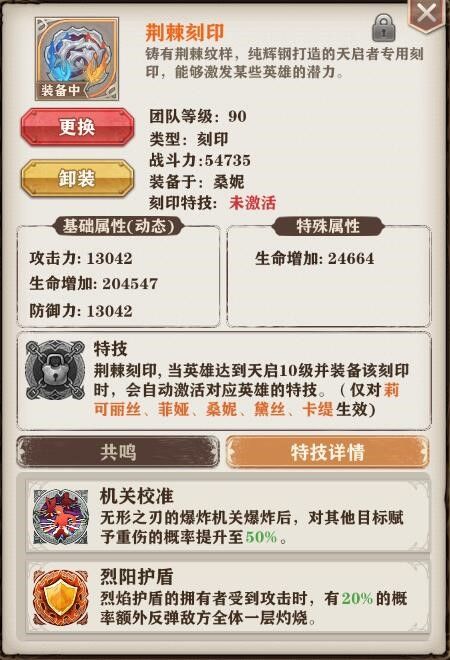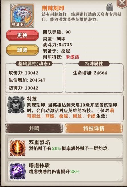亲爱的团长大人们,我们在版本1.0.260中开启了天启之力以及刻印,出于平衡性的考虑,我们选择先开放“荆棘刻印”中桑妮、莉可丽丝、菲娅、黛丝的英雄专属特技,其余刻印的英雄专属特技仍需要更多测试和调整,我们会在接下来的版本中陆续开放其余类别刻印的英雄专属特技。