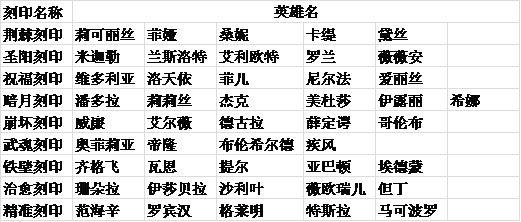 刻印分为9类,不同英雄都有自己所对应的一类刻印: