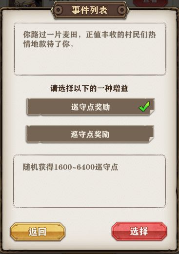 每个作战点挑战成功后,会有一定几率遇到偶遇事件,在偶遇事件中可获得奖励或者巡守点数。