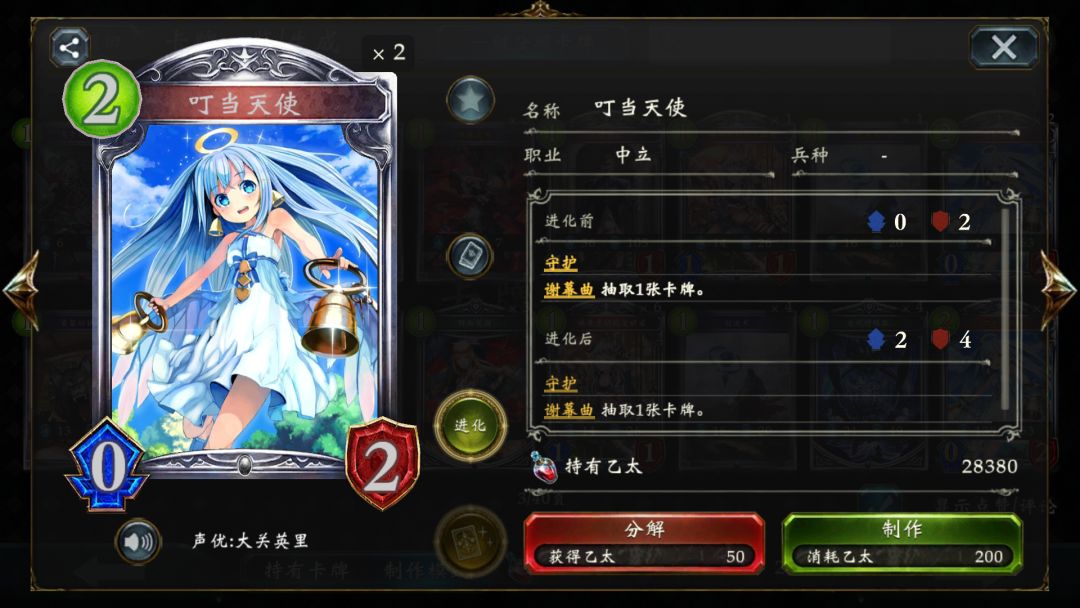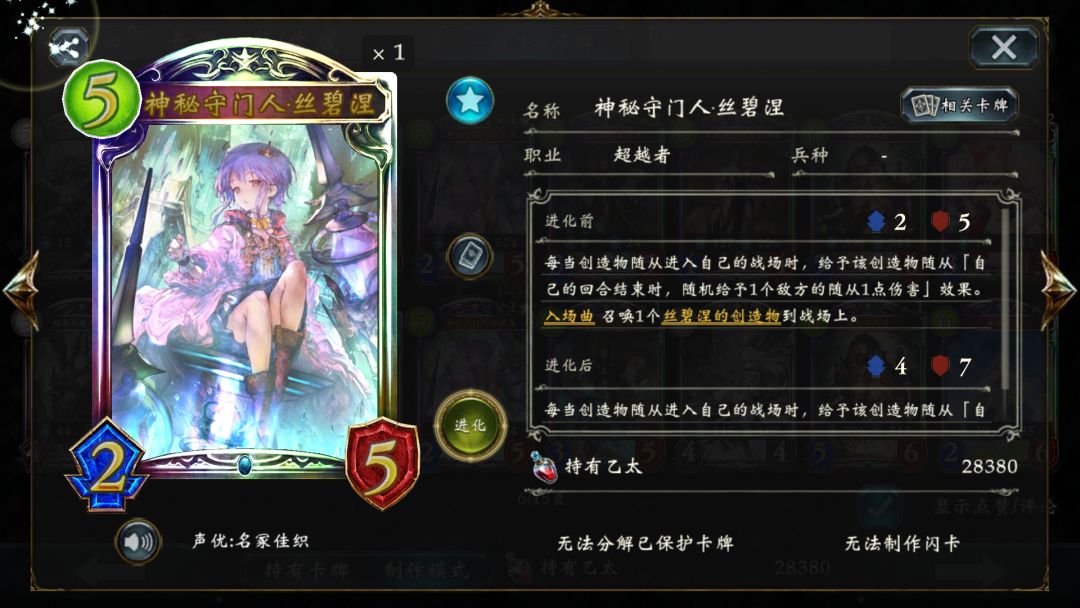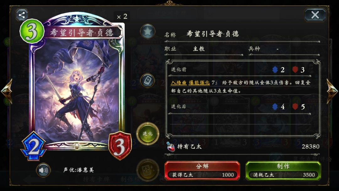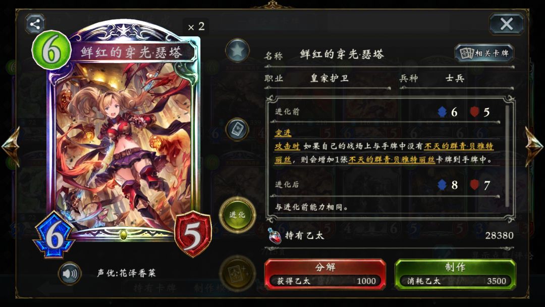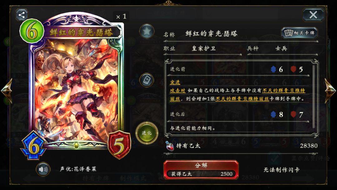 类似炉石,影之诗的卡牌也有稀有度,表现在卡牌边框的颜色上。自低至高依次为:铜,银,金,虹(彩色)。