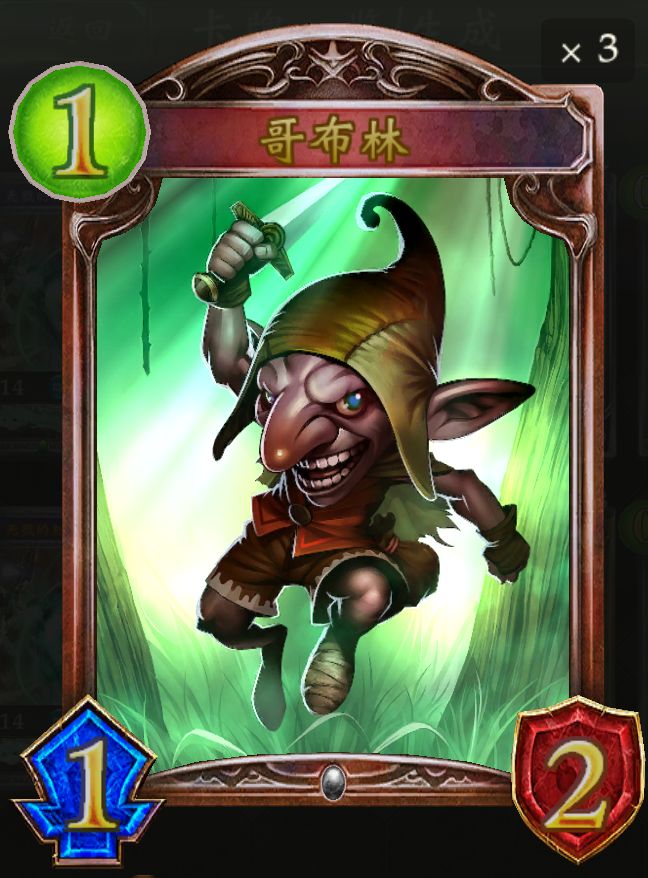 ※对某个随从的简称:法力值/攻击力/血量,如哥布林:112。