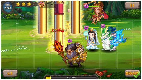 在游戏的副本系统中分为普通副本、精英副本、活动副本、传奇副本和挑战副本,随着玩家等级的提升,这五重副本系统将逐一开启,玩家也可根据自身的能力选择副本进行挑战。在普通和精英副本中,玩家每通过一个完整的副本关卡,凑齐足够的星数即可获得副本奖励,其中包括稀有英雄和英雄碎片;而在活动副本中,玩家通关之后则可获得英雄升级所需蟠桃和大量金币。