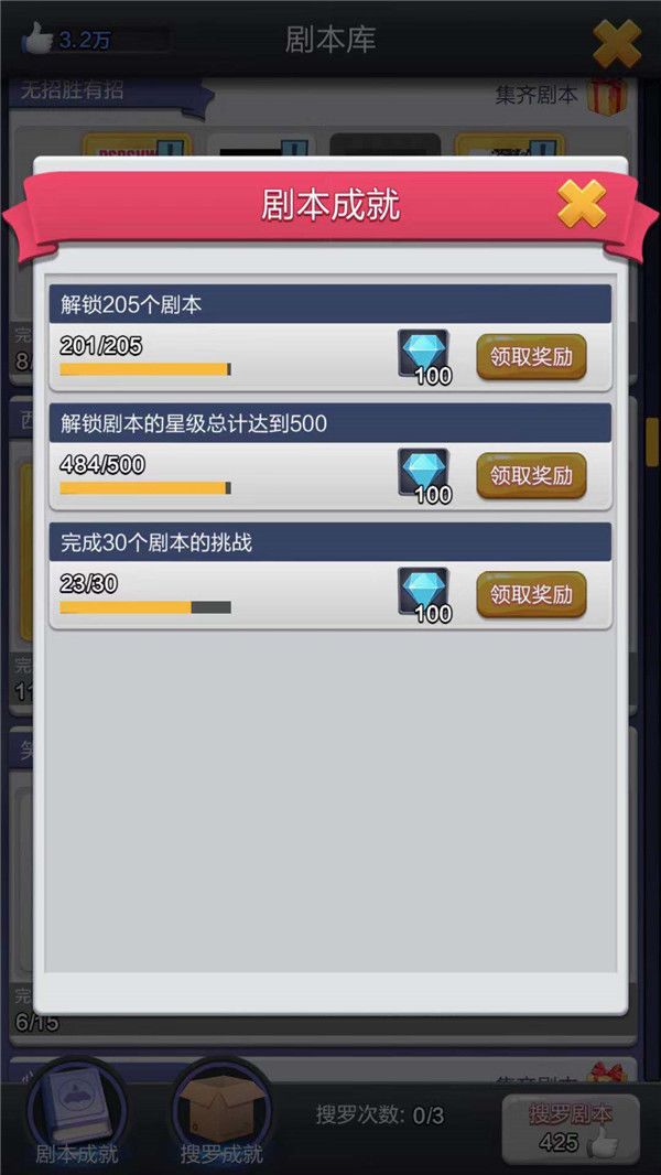 1.在剧本界面的左下角有剧本成就一栏,完成一定数量的剧本成就可以领取奖励。