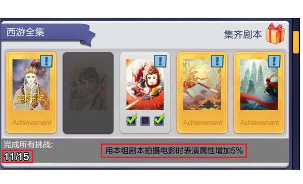 2.当我们同一组的所有剧本都变成了金本,在拍摄该组影片时会有一定的属性加成!