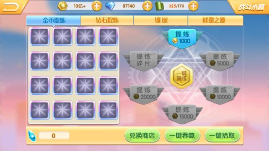 钻石提炼:消耗钻石进行提炼,点击“提炼1次”按钮,获得1个水晶,点击“提炼10次”、获得10个水晶。