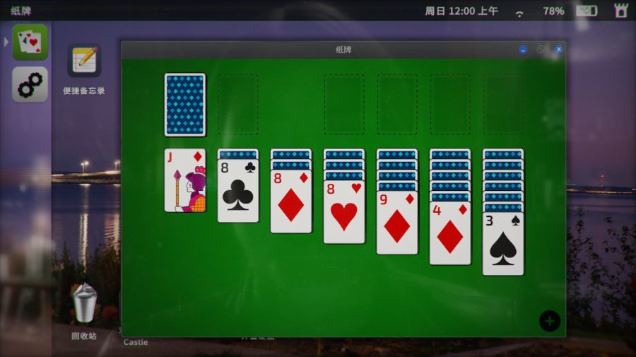 (桌面右上角有个蜘蛛纸牌小游戏)