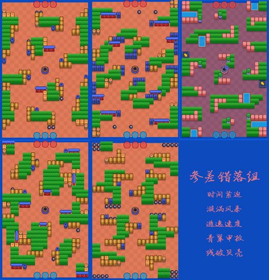 而对于近战英雄来说,尽管五张地图中有三张地图拥有大面积草丛,但只有噗噗作响的环形宽阔草丛适合藏匿突击位近战英雄。硬石矿井中近乎连贯的横向草丛和细胞分裂的跳板或许适合近战英雄绕后包剿、敌方团灭后的压前阻击,但比较考验团队的战术配合,实战价值不高。