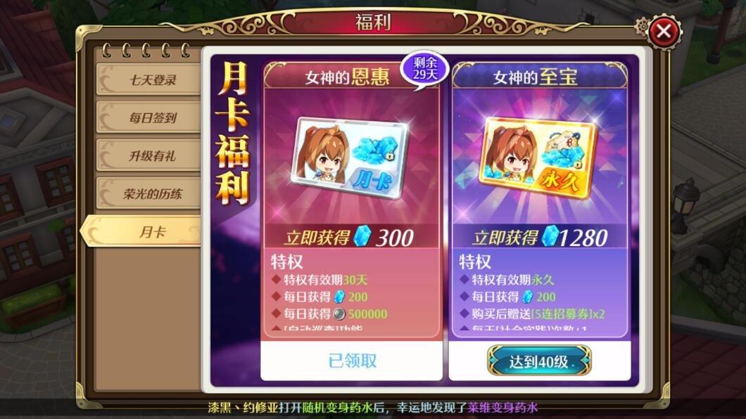 好像内测达成成就可以领取月卡 不知道公测有没有这个活动 这个活动好亲民啊 不氪金也能体验特权