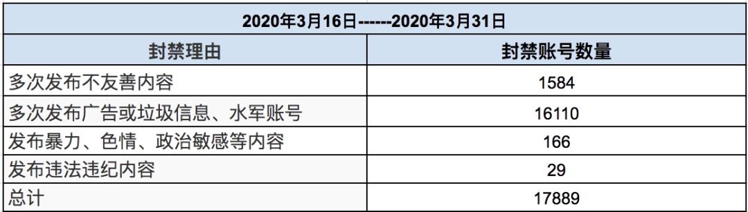 三月下半月禁言总量572,同期相比无明显变化,因不友善类和垃圾广告类内容被禁言的用户依旧占据了大部分数量,大家发布内容时一定要遵守相应的社区规范哦~