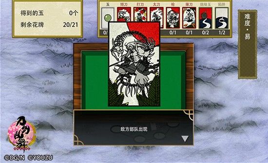5. 每完成一次翻花札行为后,都可以选择“部队返城”,本次出阵收集的【玉】会全部带回本丸。如果是被敌方击败,或者因翻到4张同类型【敌】花札而强制返回本丸,则会损失一部分已经获得的玉。