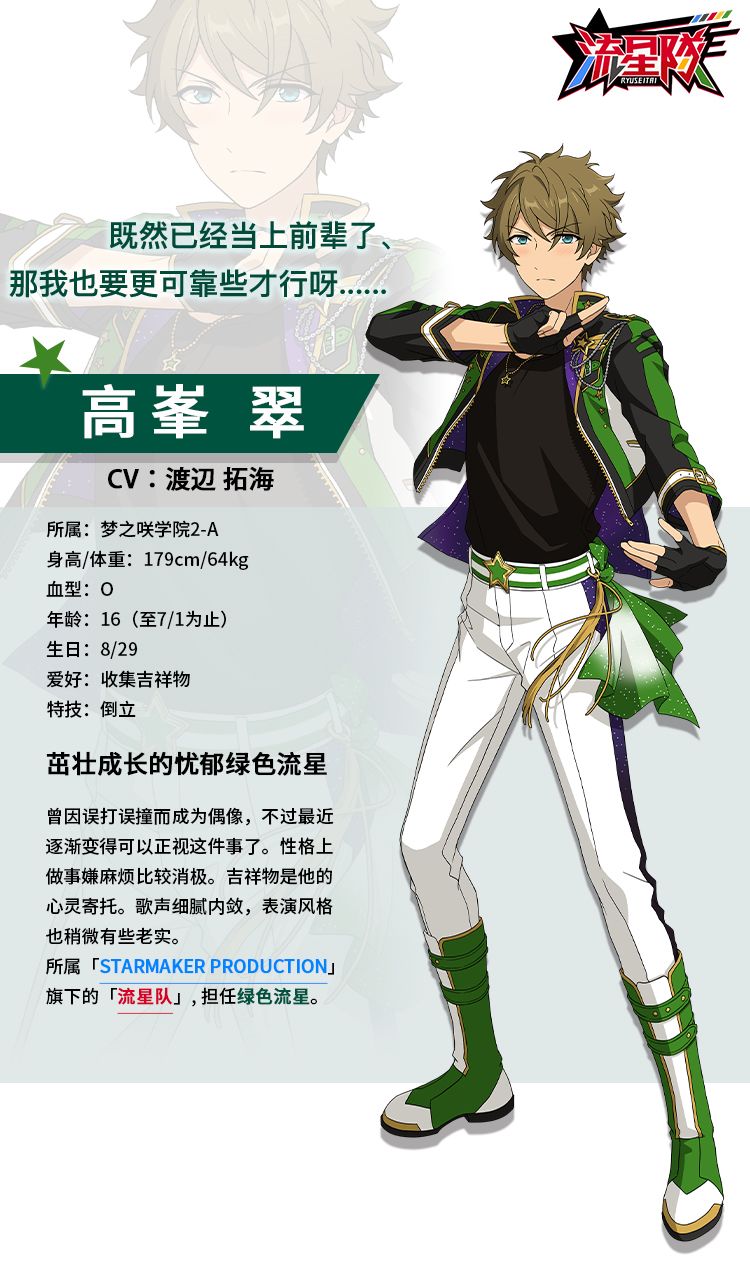 所属于「STARMAKER PRODUCTION」旗下的「流星队」,担任绿色流星。