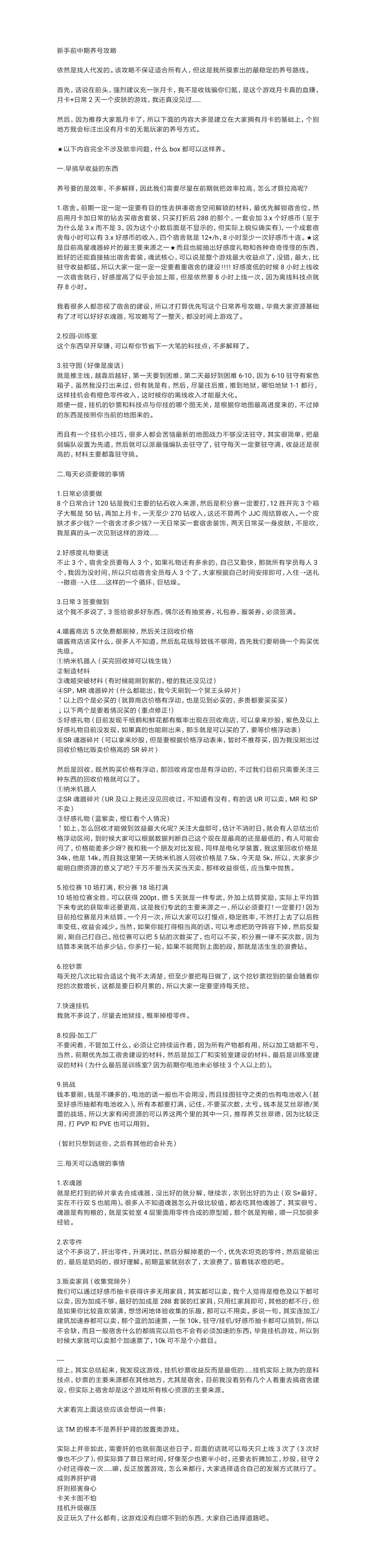 【新手必看】前中期养号攻略(ver10.15宿舍依然高优先)