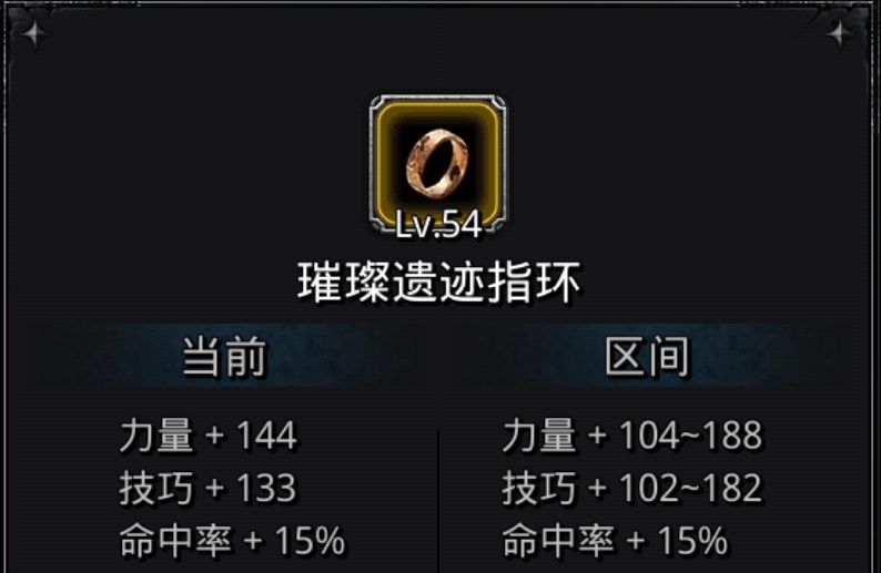 tip&数量需求:璀璨遗迹指环作为物理系输出职业堆命中提输出的必需品,可以减少城主对蓝宝石戒指的需求,帮助缓解法师队没有命中的压力,需求量很大,个人推荐:6个及以上(前中后期,开到就不要分解,大后期,过了图18以后好装备会很多,璀璨指环需求量减少,留6~8个打打遗迹应该也够了,)