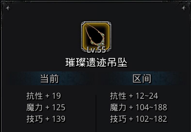 评价:中魔中技微抗,前期法师队很实用的饰品之一,毕竟前期看着法师触发特效元素之力,打出一波又一波伤害就特别爽,而且还可以给祭祀撑奶量抗性(在祭祀技巧要求高的情况下,璀璨吊坠>璀璨护符,)但是后期一旦打到迷雾岛,拿到臂章腰带以后,你就会发现,这璀璨吊坠它不香了,毕竟臂章比它香(高魔低技中体质+15命中率+元素之力特效)太多了,but,后期它真的就一无是处吗?答案是否定的,璀璨吊坠本身有较高的技巧(71锻,吊坠技巧上限182,臂章技巧上限88),且不一定要其做一个输出位专用装备,后期最吃技巧的职业是祭祀,高魔高技巧的吊坠可以为祭祀带来不少收益,至于大后期(各位大佬补充能补充一下嘛(´・ω・`))