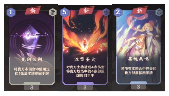 简称坟回:将已进入坟场的牌移回手牌中,不占用牌库资源,目前只有从我方坟场回手,且只有以下这3张,且其中除了涅槃圣火,其他两张都只对当回合进坟场的牌有效: