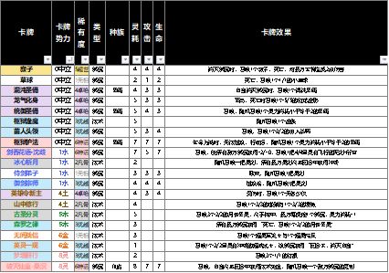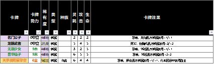 另外除去拥有以上技能效果的卡牌外,剩下的部属牌可以分为两类:没有异能的白板,以及有异能的部属,这些有异能的“纯异能部属”如下:
