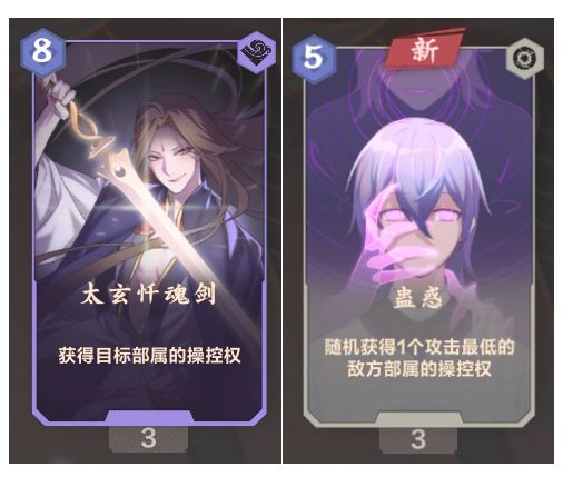 只有2张,水属性的太玄忏魂剑是最完美的永久操控,而阳属性蛊惑因为指向攻击最低目标,很容易操控到小兵,价值也就低一些