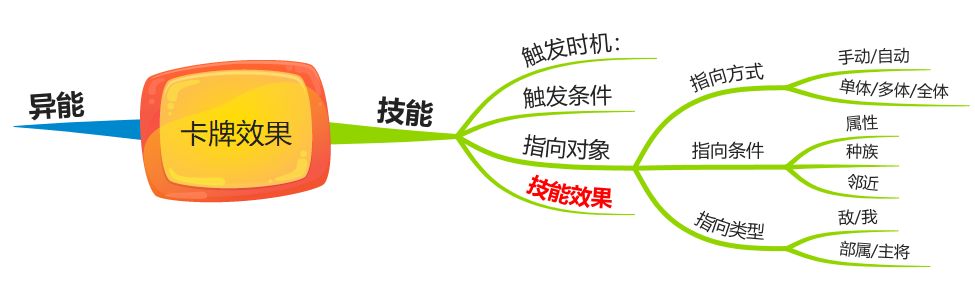 虽然经过前面的信息剔除,卡牌的技能效果明确了很多,但还是数量繁多。经过归类,会发现很多效果虽然看起来不同,但希望达到的目的却是相似的,我们就据此来进行效果的分类。
