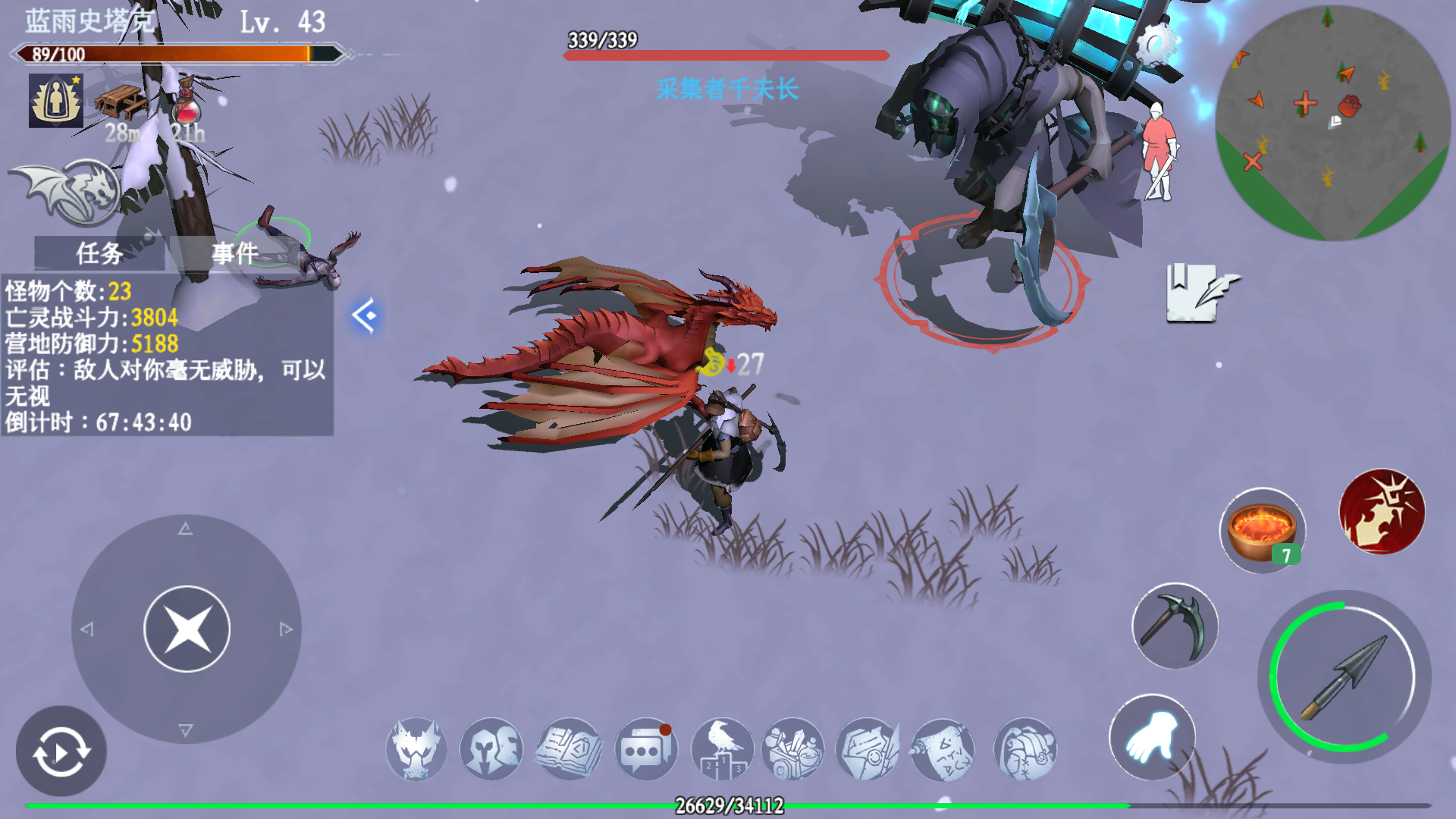 二级套,铁剑即可,我是没啥武器,随手拿了铁矛(清怪1下1个)和镰刀。(打俩boss)一共40只怪(铁甲长矛兵,村民和俩boss)