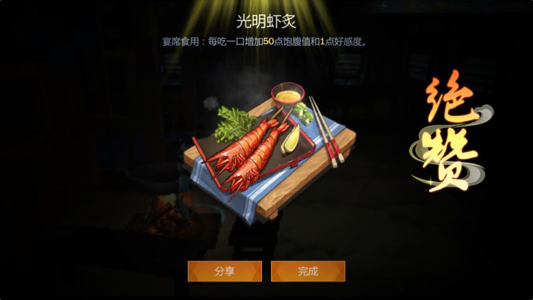 宴席效果:每吃一口增加50点饱腹值和1点好感度
