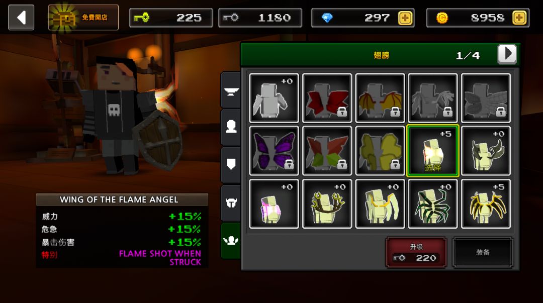 火翅膀:受到伤害向周围发射4个火球碰到敌人会爆炸并眩晕敌人,不穿透