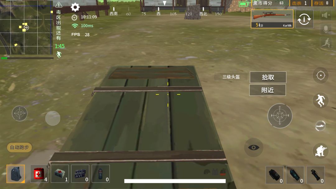 开始杀了一个躲死人盒子里,看到最后安全区就跑过去,结果你来个是轰炸区????躲房子下面被炸死了。(房子进不去)总之bug快修复吧 唉 明明可以吃把鸡