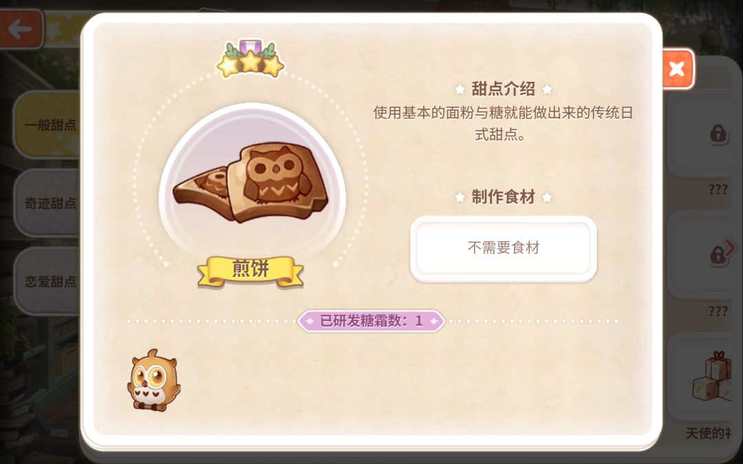 在你还没去台北前把煎饼升3星吧,毕竟是无本买卖。我一开始玩儿的时候觉得钱来的容易就随便把大福和戚风蛋糕也升3星了。悔得肠子都青了我……