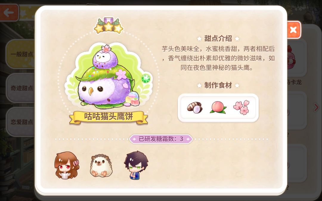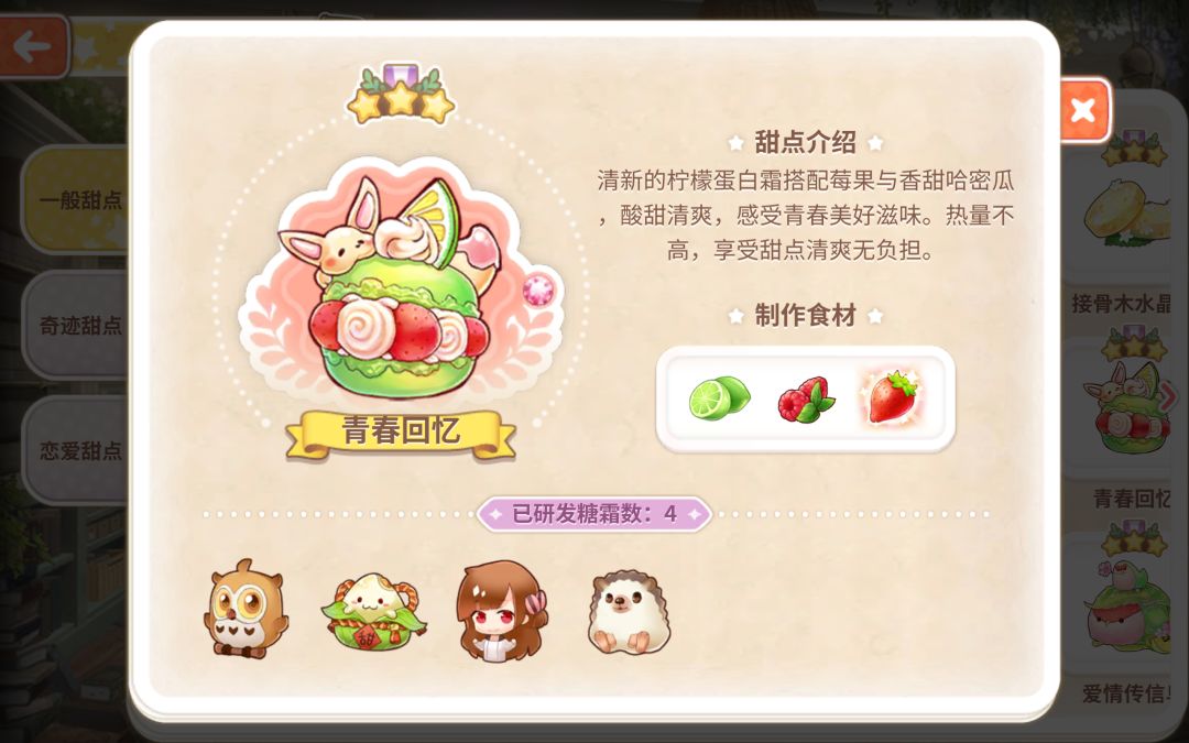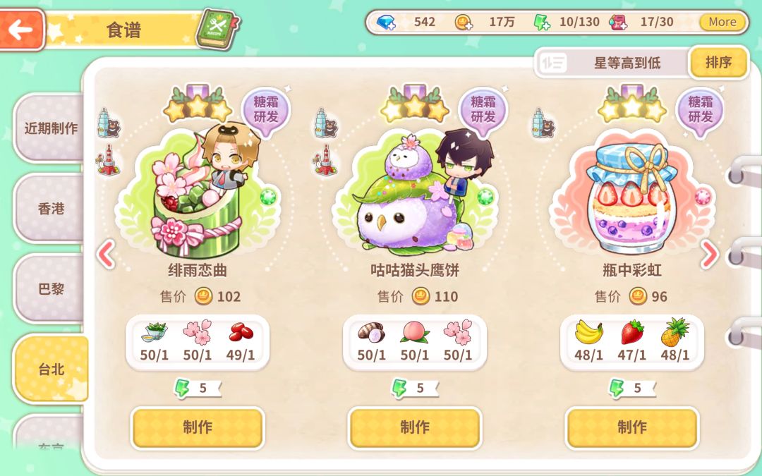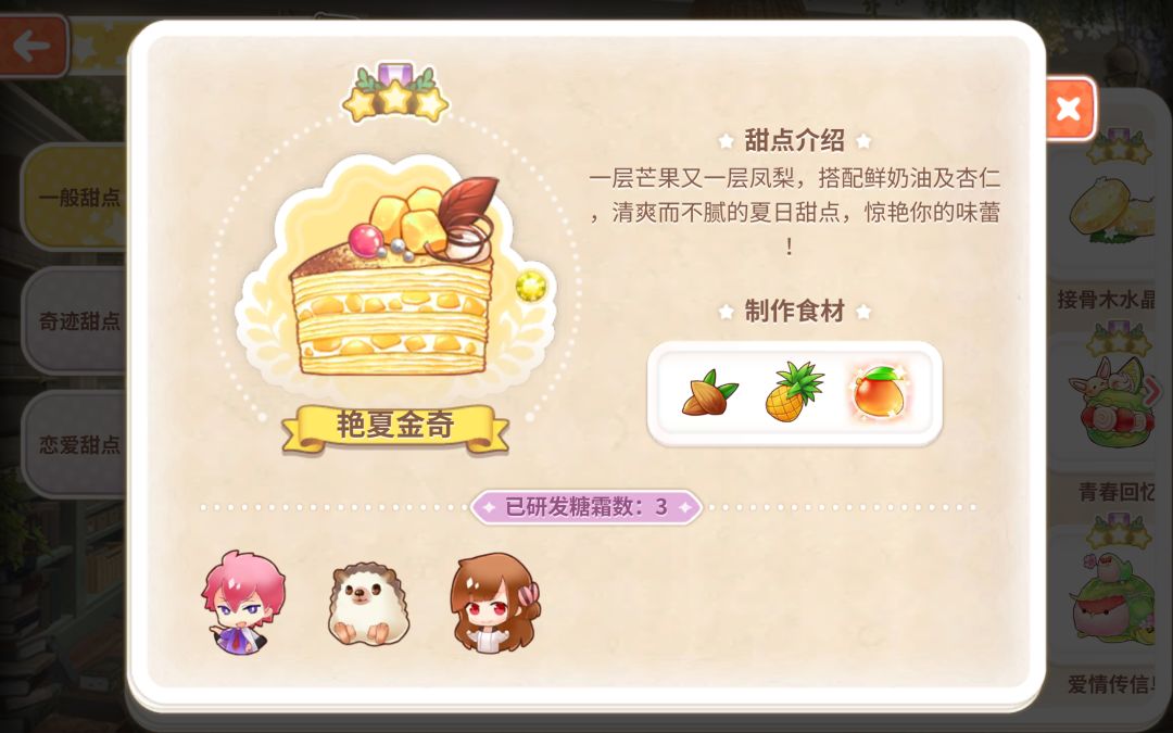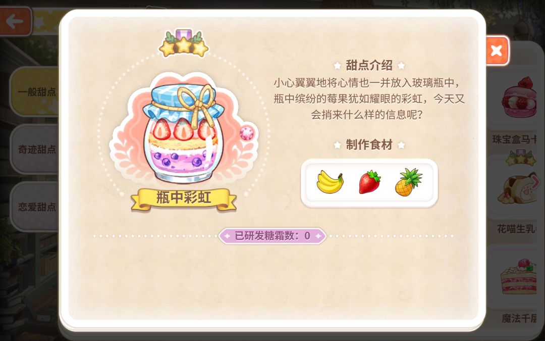 同样的,【珠宝盒马卡龙】【哈密瓜球慕斯】也需要3星来完成手札。
