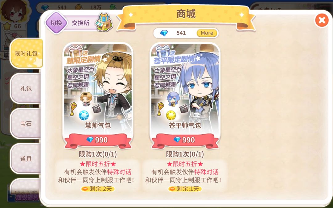现在一共有7个可攻略的男主。想要攒钻石买某个男主礼包的话,就忍住不要解锁星空树第二关。因为一解锁就会激活7天半价礼包倒计时,我当时手贱的5个全开了,结果没办法充了个88基金。