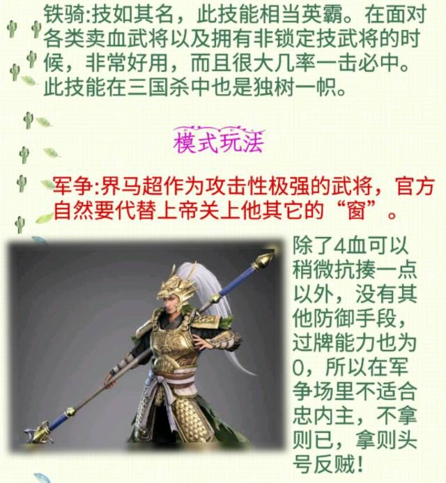 三国杀武将之界马超(浅析篇)