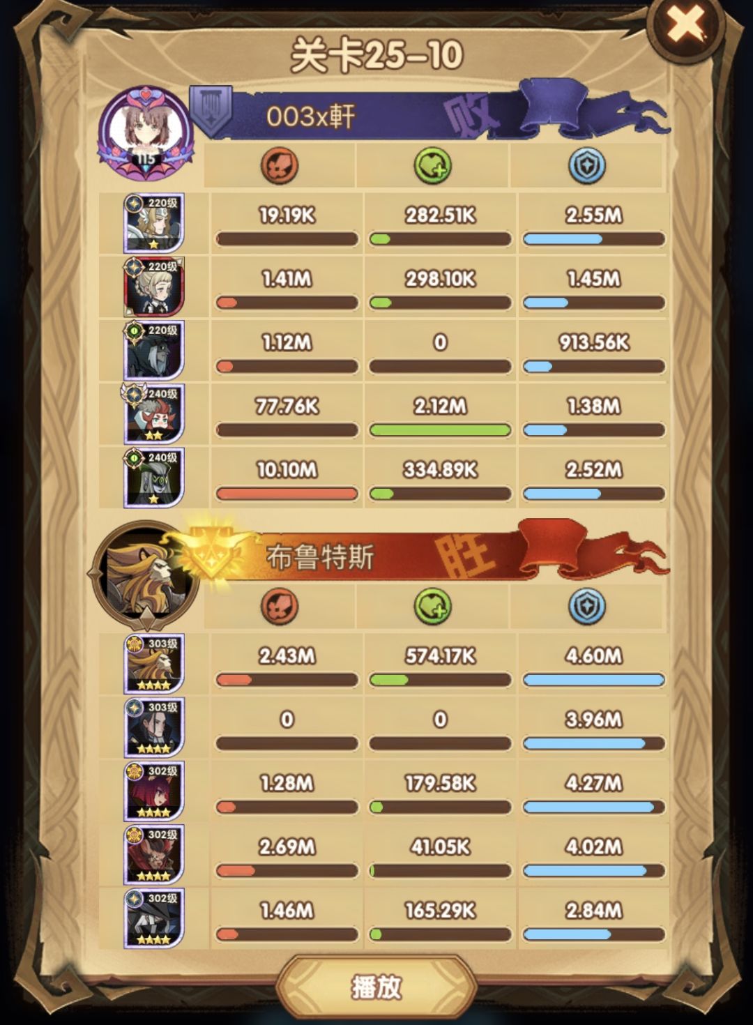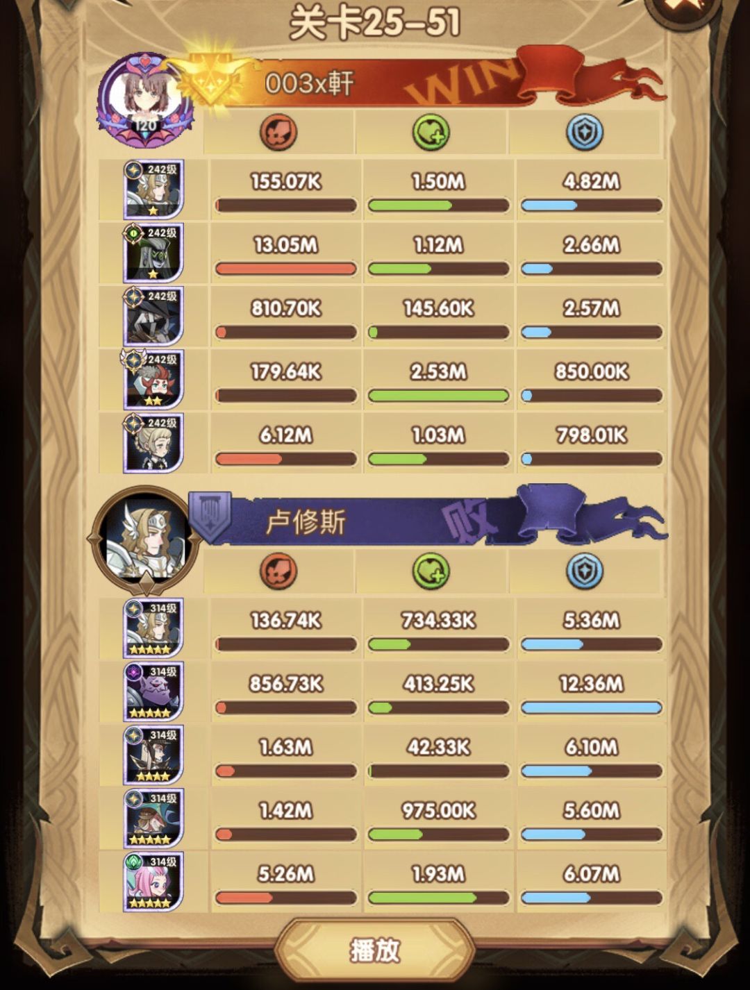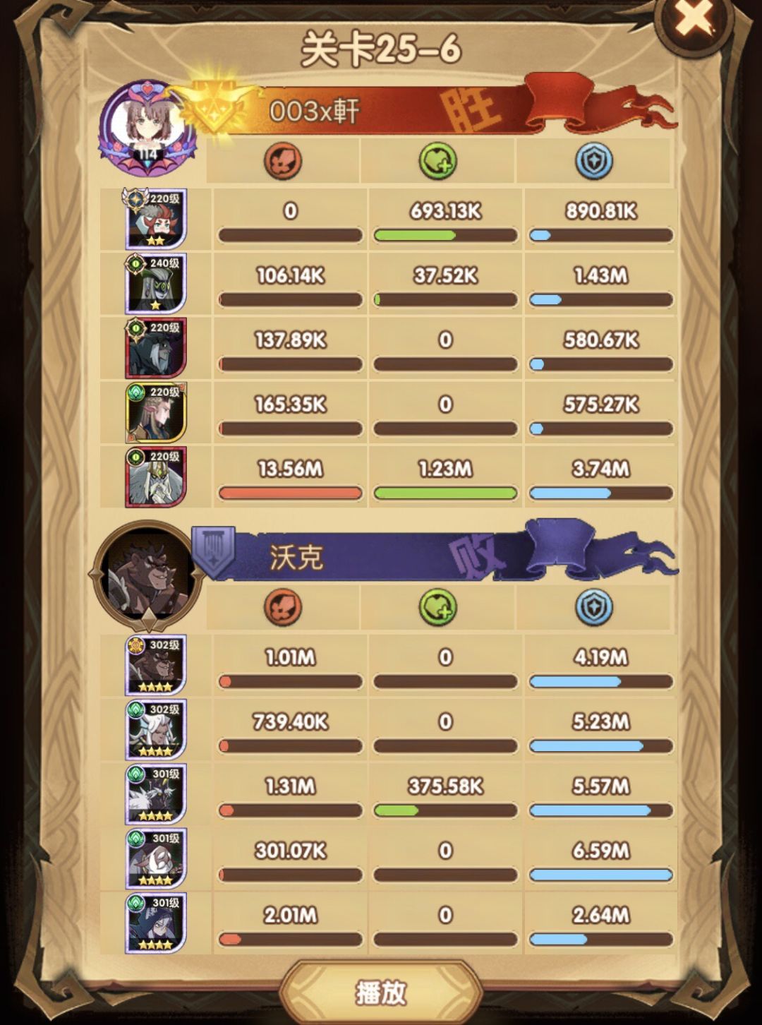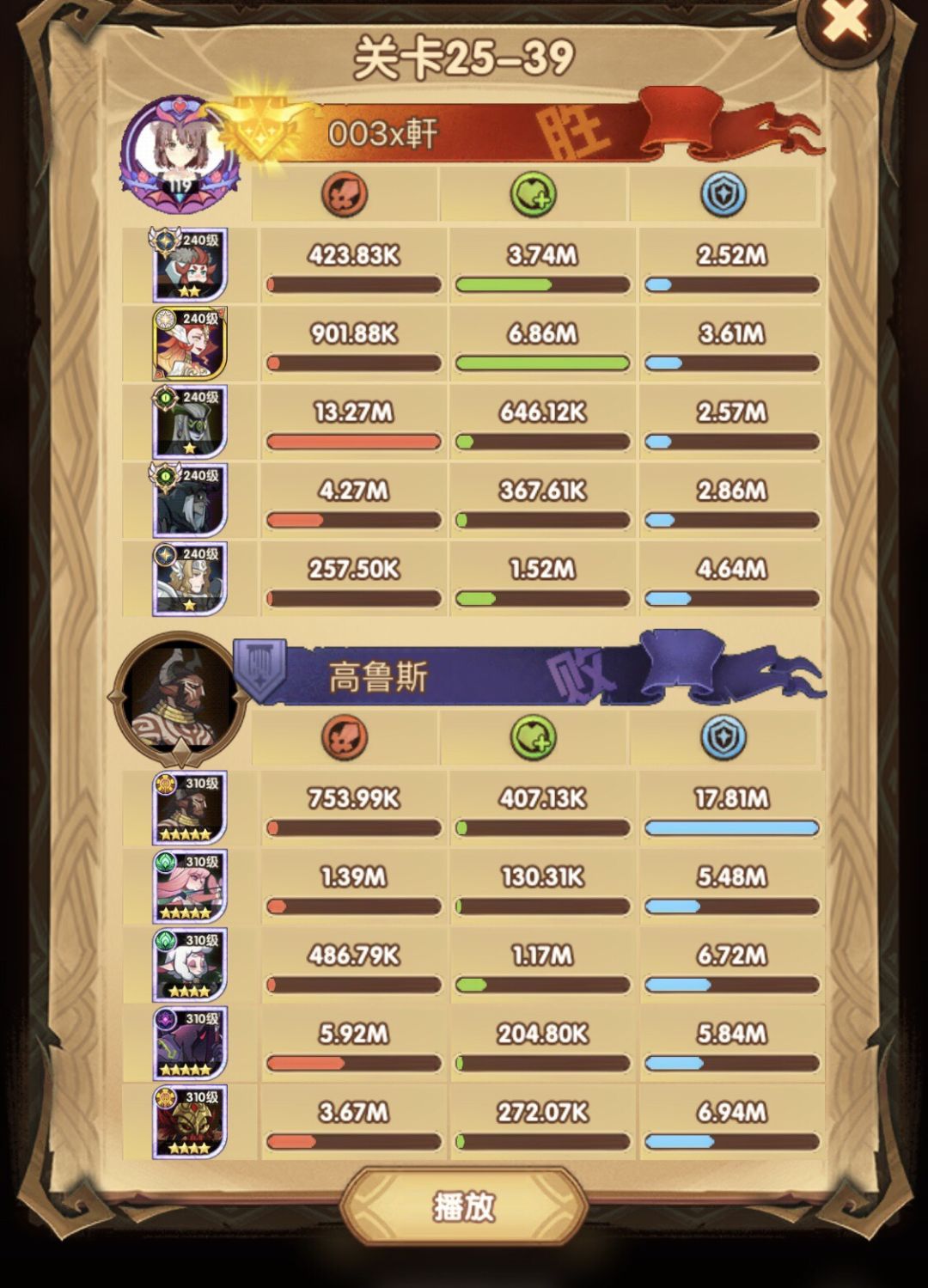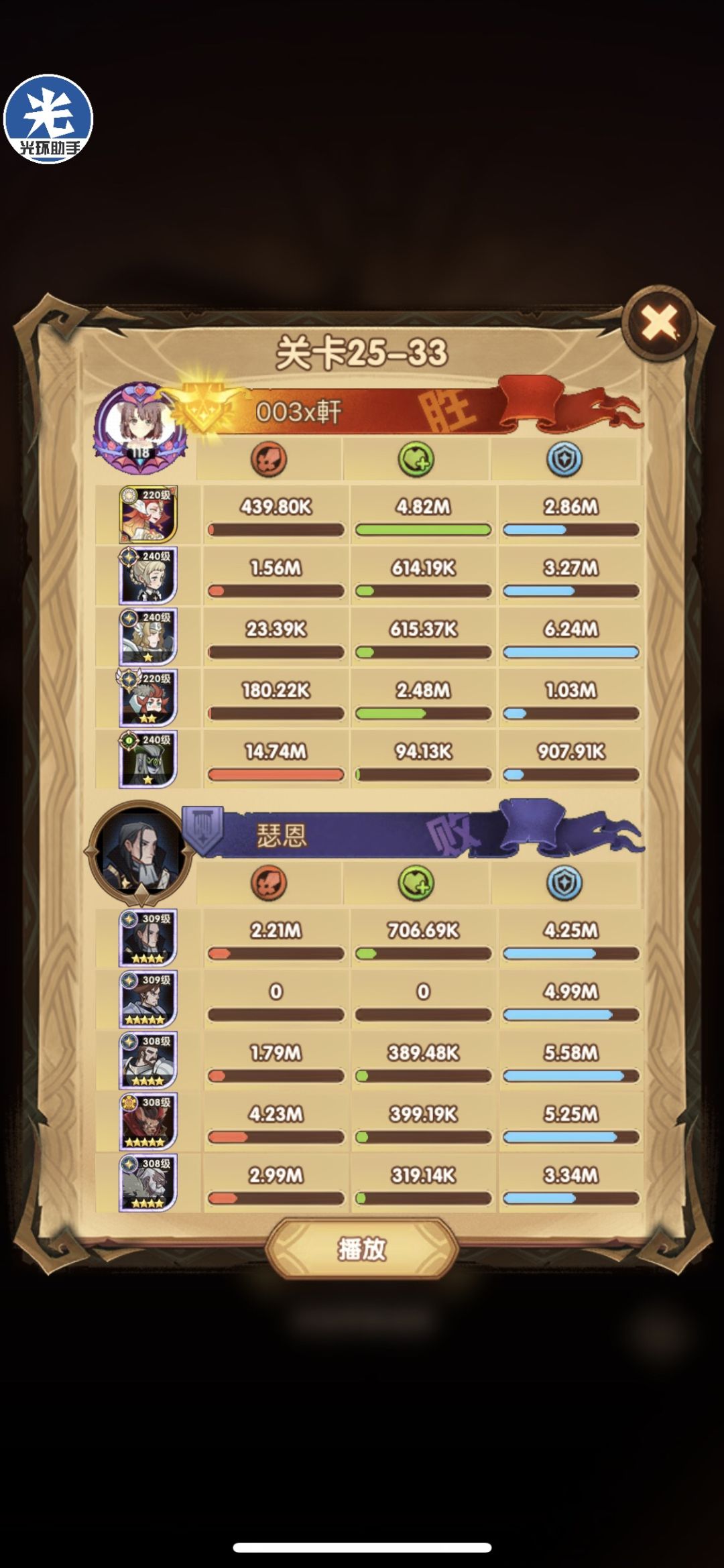 25-46 两天前其实就到全队240,还能升两级的但是我压着等级没升,想试试女妖全队240到底能不能过25章,但re了两三天之后还是只能推到-46,而且也没去更新,女仆也没有+20,女妖的输出真的一言难尽,女妖队,女妖骨弓,骨弓凤凰魅魔,很多方法很多阵容我都试过了并且都re了很久,最好的情况都是差一点点一点点,骨弓是打到时间结束差一点打不死,看的人也是很难受😂,这两天一天平均到8小时的re,甚至于更多,上周末有到十几个小时,所以我真的是尽力了,当然也很有可能是我自身能力不足,但我在我的目前情况下基本是尝试到最极限了,后面就慢慢升级着打了,如果没能达到大家的期望也只能抱歉了,这个头发日渐稀少的楼主尽力了😭