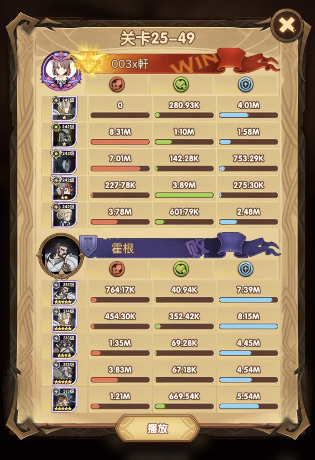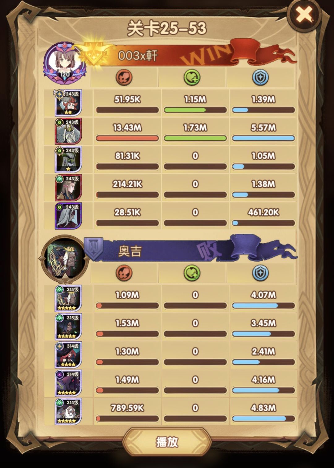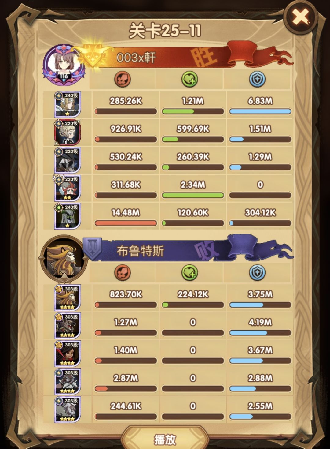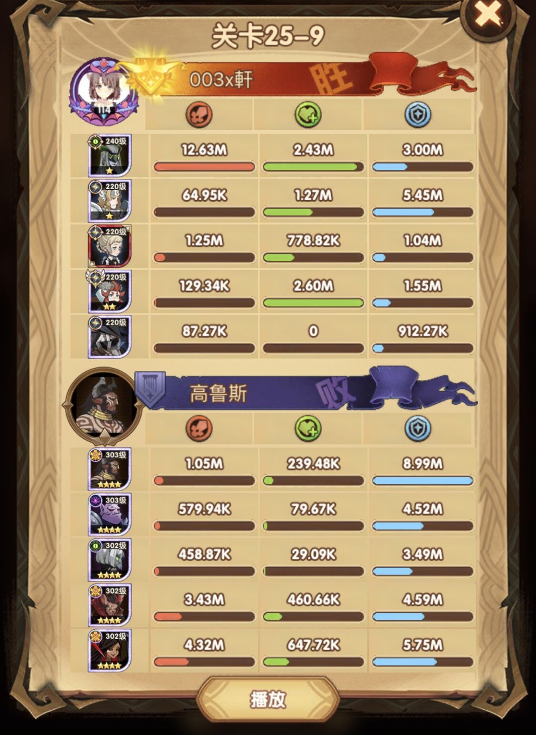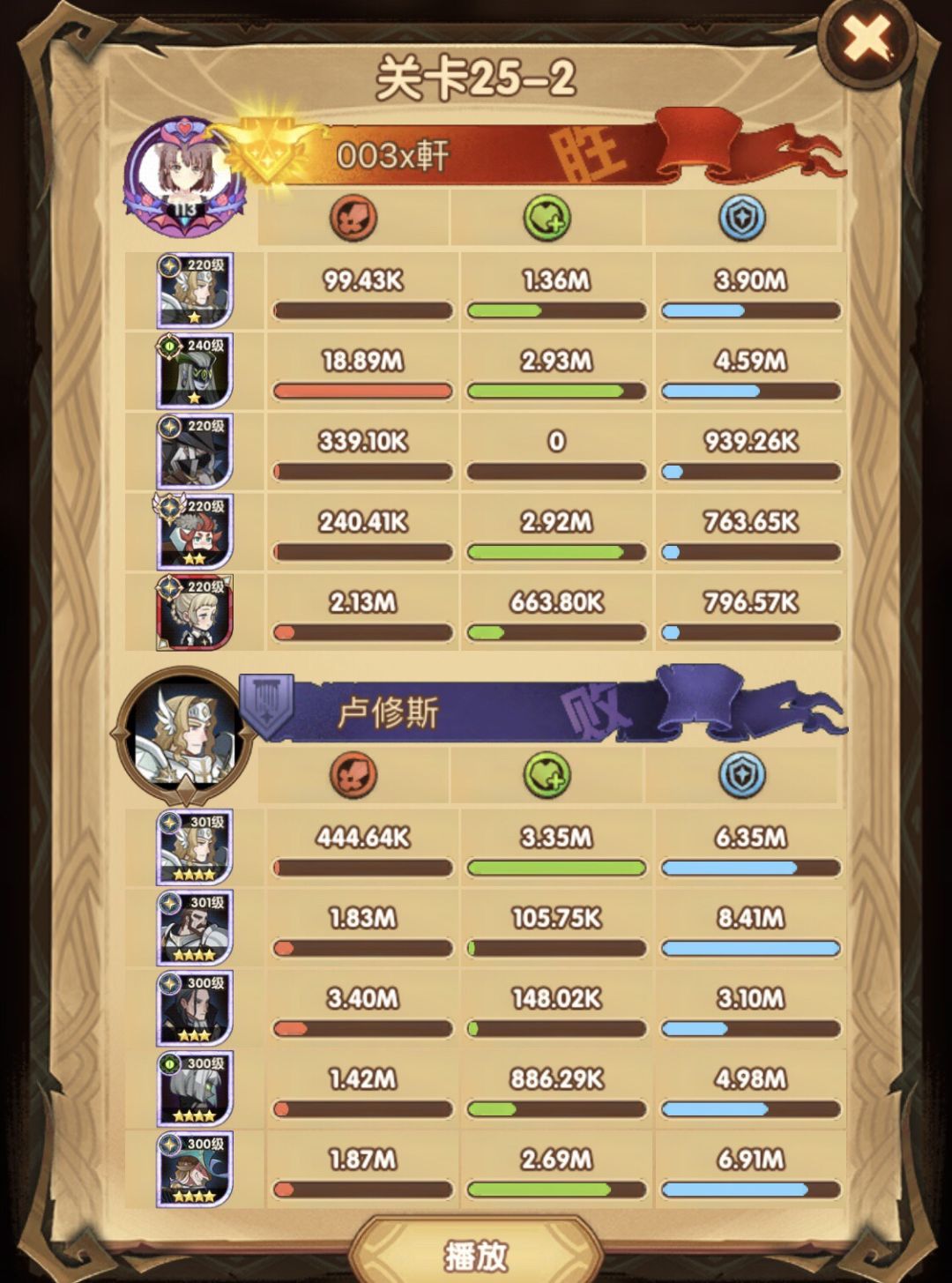 25-46 两天前其实就到全队240,还能升两级的但是我压着等级没升,想试试女妖全队240到底能不能过25章,但re了两三天之后还是只能推到-46,而且也没去更新,女仆也没有+20,女妖的输出真的一言难尽,女妖队,女妖骨弓,骨弓凤凰魅魔,很多方法很多阵容我都试过了并且都re了很久,最好的情况都是差一点点一点点,骨弓是打到时间结束差一点打不死,看的人也是很难受😂,这两天一天平均到8小时的re,甚至于更多,上周末有到十几个小时,所以我真的是尽力了,当然也很有可能是我自身能力不足,但我在我的目前情况下基本是尝试到最极限了,后面就慢慢升级着打了,如果没能达到大家的期望也只能抱歉了,这个头发日渐稀少的楼主尽力了😭