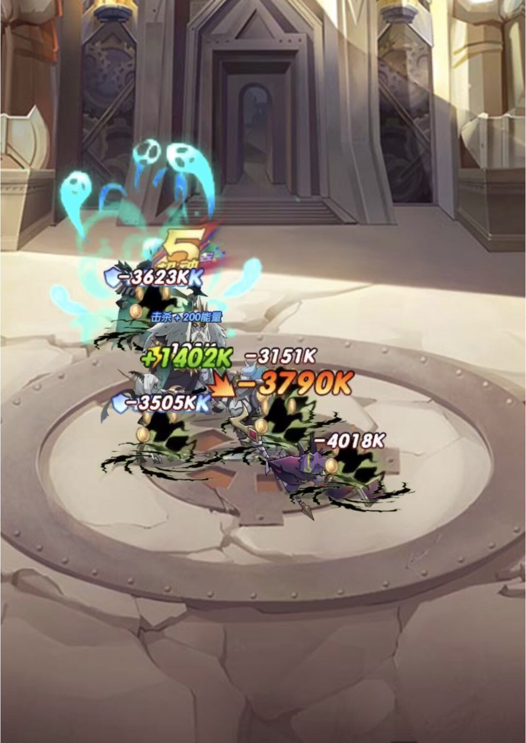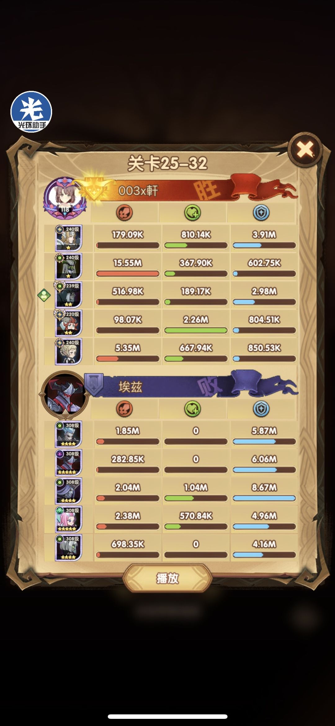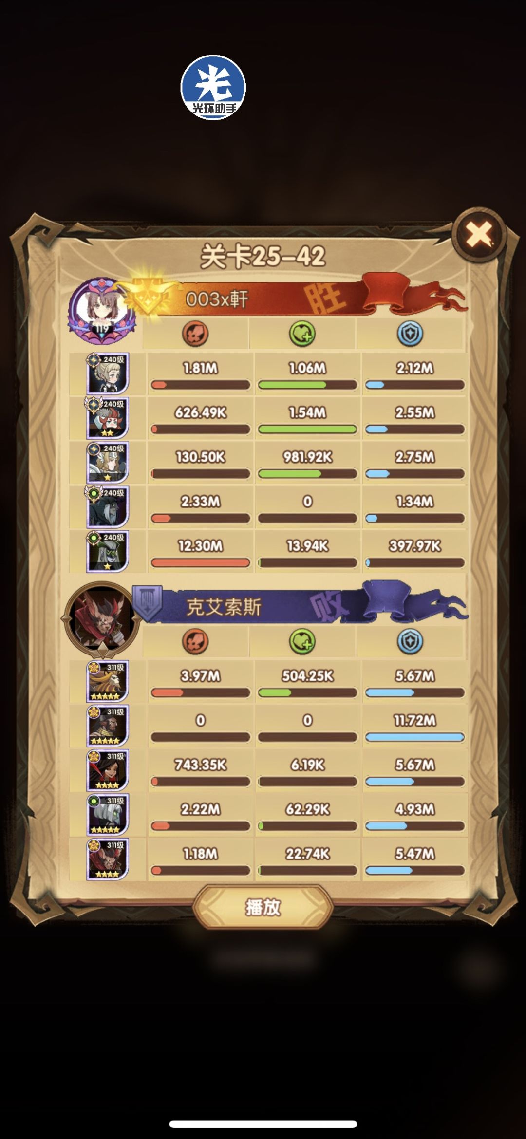 这关我差点以为我打折跃呢??? 女妖开了n个大才过,而且这关需要全员存活,控制伤害连上,光盾不能死。不过re次数不多,很快就过了。