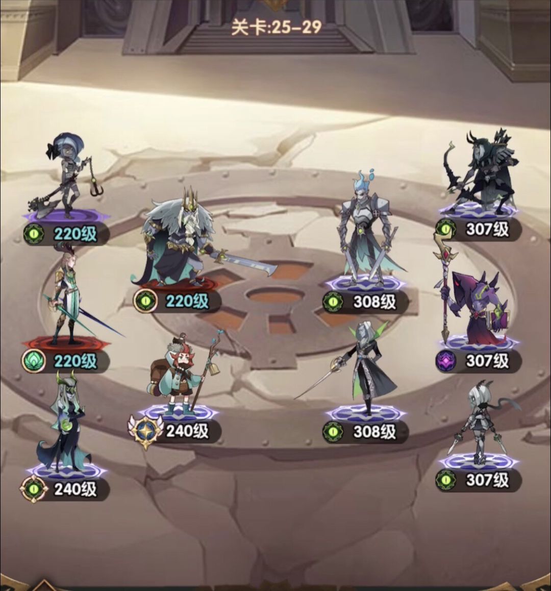25-3 这关光盾能抗住开出大,还是小羊连续魅惑两次骨弓,需要光盾和商人先后开出二大,神器正常佩戴。看来女妖是想告诉我,她不仅不走,还要站c位! (骨弓白了的可以试试骨弓,站小羊位置,我+20的红骨弓都差点能过)