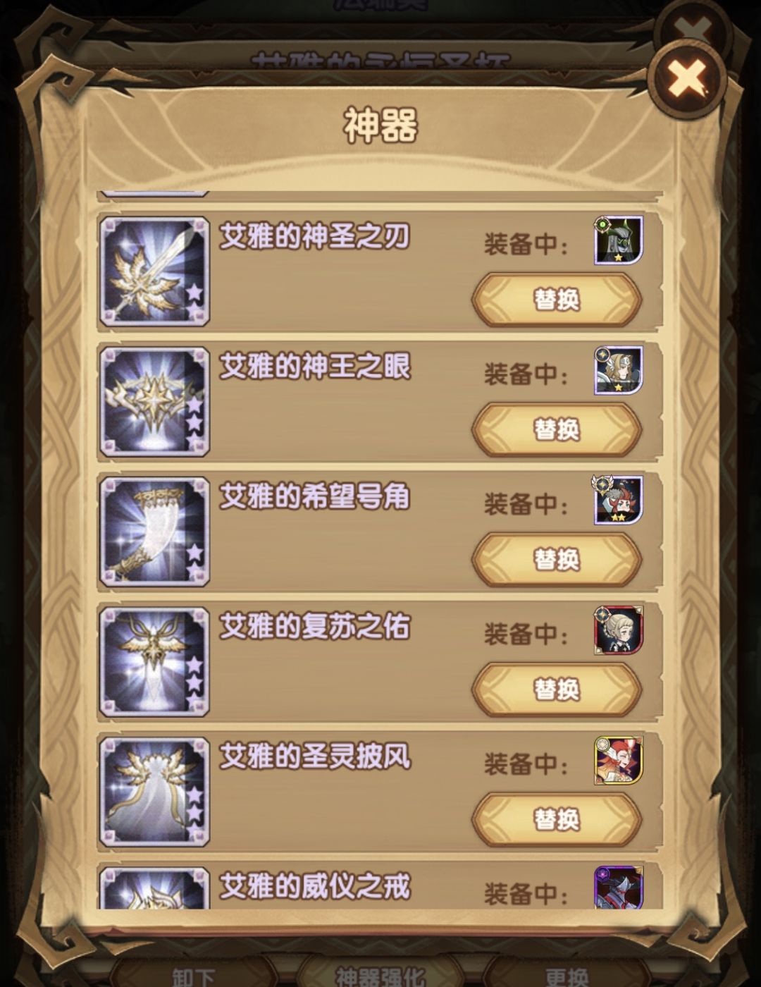 神器:女妖(神王),女仆(闪避)