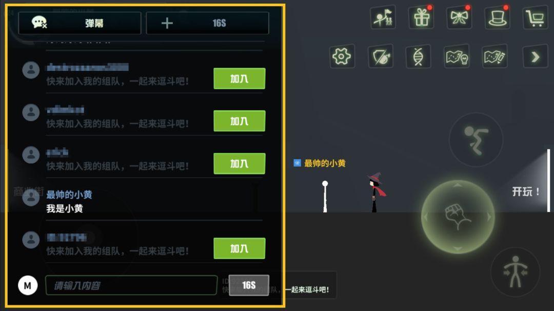 能发弹幕的主界面你见过吗?在每个界面的正下方有一个小方框,点击就可以找到弹幕功能。不论你是想交友、公屏喊话还是发布组队信息,都可以在这里实现!