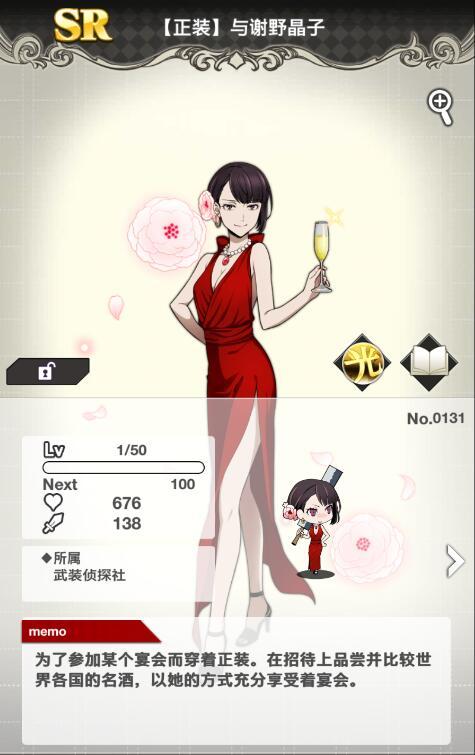 为了参加某个宴会而穿着正装。在招待上品尝并比较世界各国的名酒,以她的方式充分享受着宴会。