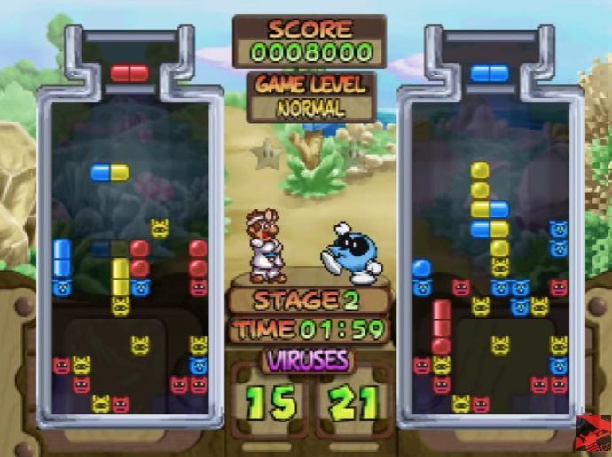 《俄罗斯方块》的下落式消除玩法风靡一时,为了抢占市场,当时的游戏业巨头们也纷纷推出了类似的作品,比如SEGA的人气游戏 “噗哟噗哟”,以及任天堂的《马力欧医生》。