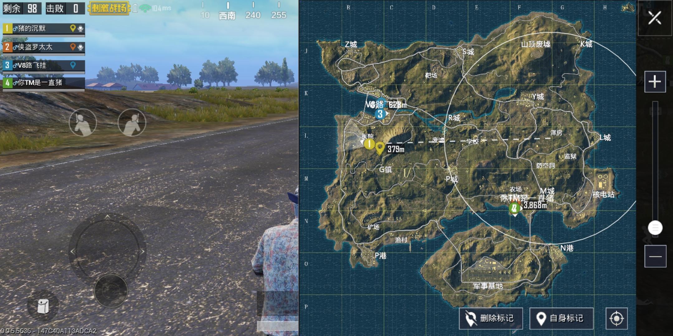 开始跳伞,很不幸,尴尬的一幕出现了,圈正好在那里 ,这是不要怕,延公路继续跑 ,直到找到车。楼主标记的是 k城,所以就以k城为例。(路上有人的话,绕过他就行了哟,比如朝林子跑)