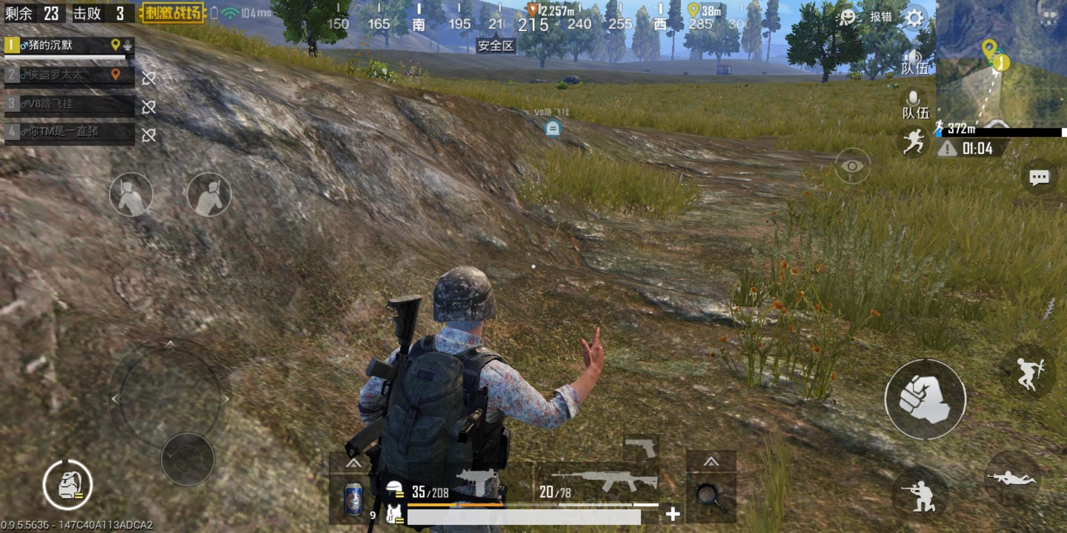 毒来了,这时我们继续边跑边搜,前期不要怕吃毒喝瓶饮料就差不多了。这时就有技巧了,如果你去的地方没人(百分之80是绝对没人的。)就延公路跑,有人的话避开公路,去搜野区。(你可以看车的时候看下房子,如果房子开着的就,避开就行了)