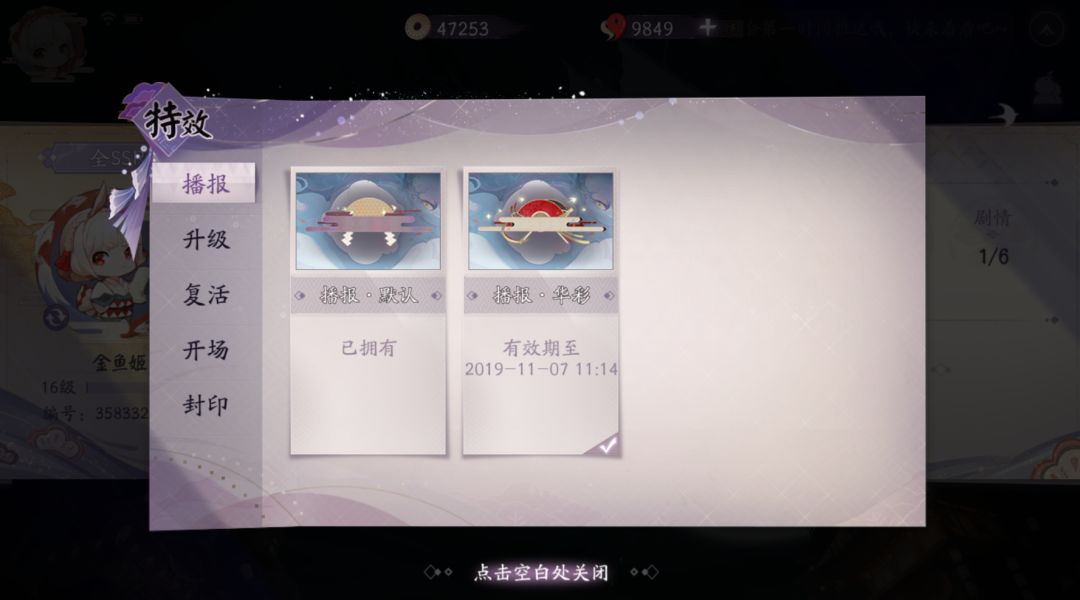 特效属于视觉上的体验,长期使用一款特效会使人造成审美疲劳,如果客人想要替换特效的话,请在特效图鉴直接点击想要使用的特效就能直接替换,替换完成之后特效右下角会有一个“√”表示替换成功。