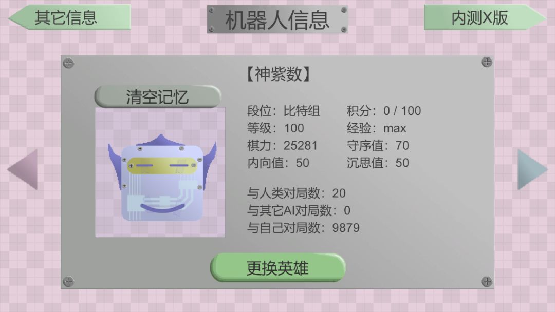 另外,我能获胜是因为这次选用的AI是【紫小数】,如果用【紫幻乐】练到100级的话我赢不了。因为紫幻乐擅长零散的阵型。在我意识到全局策略前她肯定比我更早意识到。