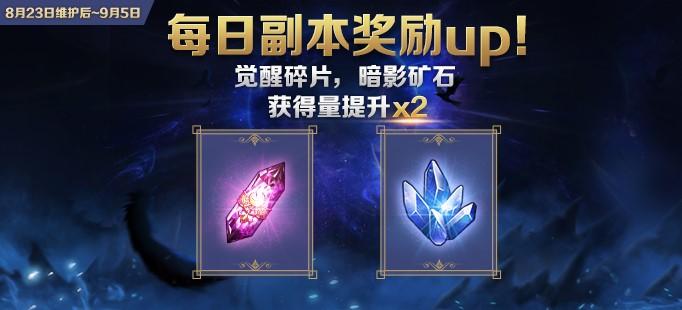 活动时间:8月23日维护后—9月5日,活动期间骑士参与【每日副本】挑战,觉醒碎片、暗影矿石获得量提升X2