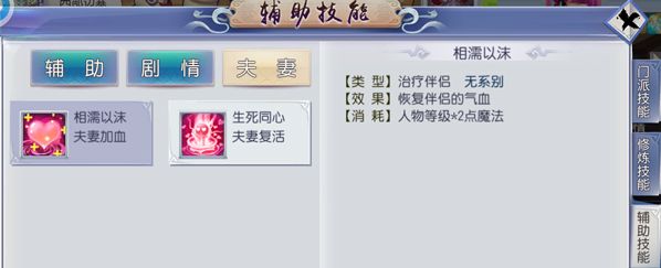 结为夫妻后,可以在“技能-辅助技能-夫妻技能”中查看