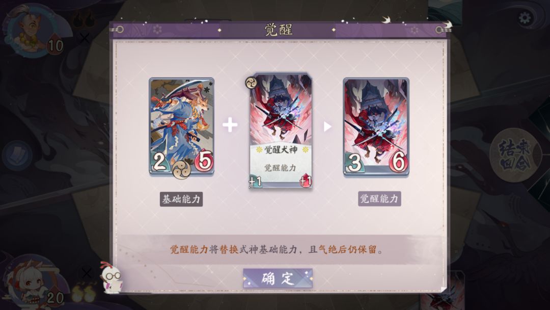 1、“觉醒”能力会替换式神原有的“基础能力”,使式神变的更强,而且“气绝”后仍然保留,所以在对局中要注重“觉醒”卡牌的使用,从而带来有利的局面。每个式神的“觉醒”能力不同,要灵活运用。